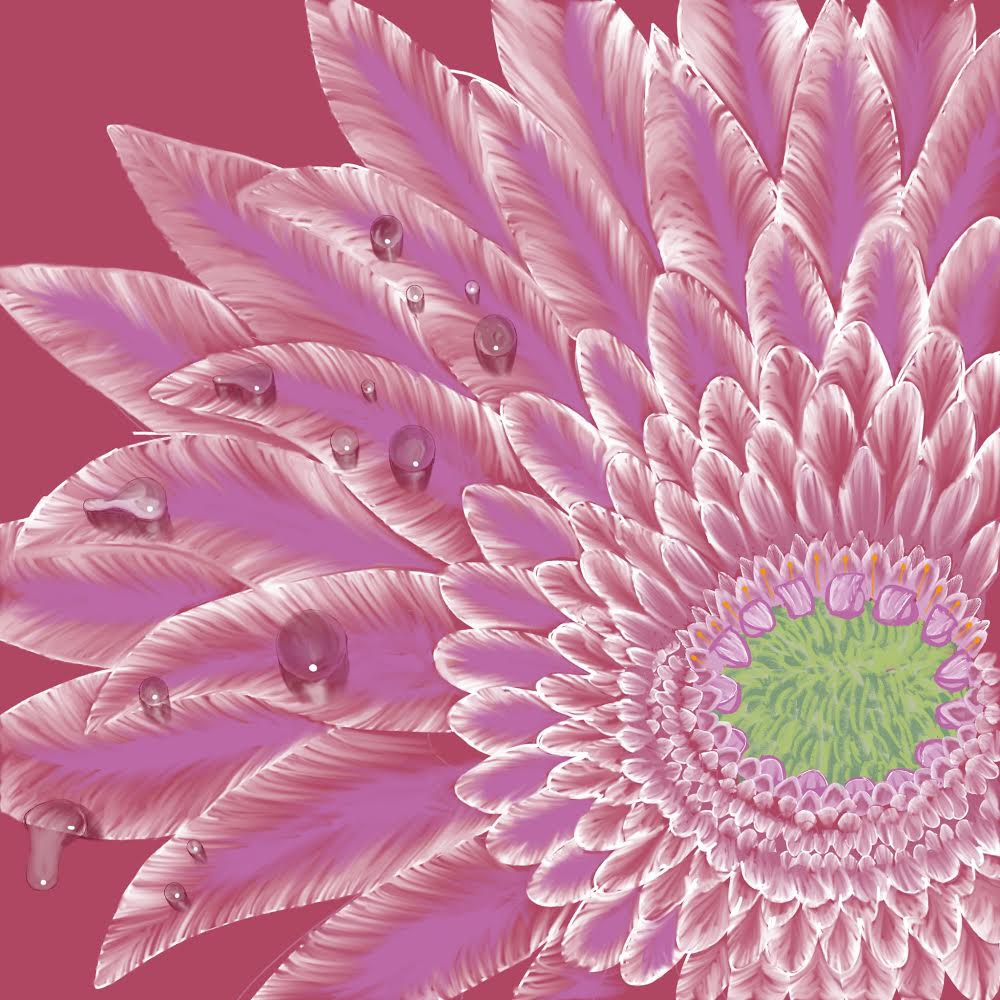 I also put together a new gerbera with water droplets. I really enjoy using this style and paying close attention to the drops, trying to give them volume in a 2D drawing,