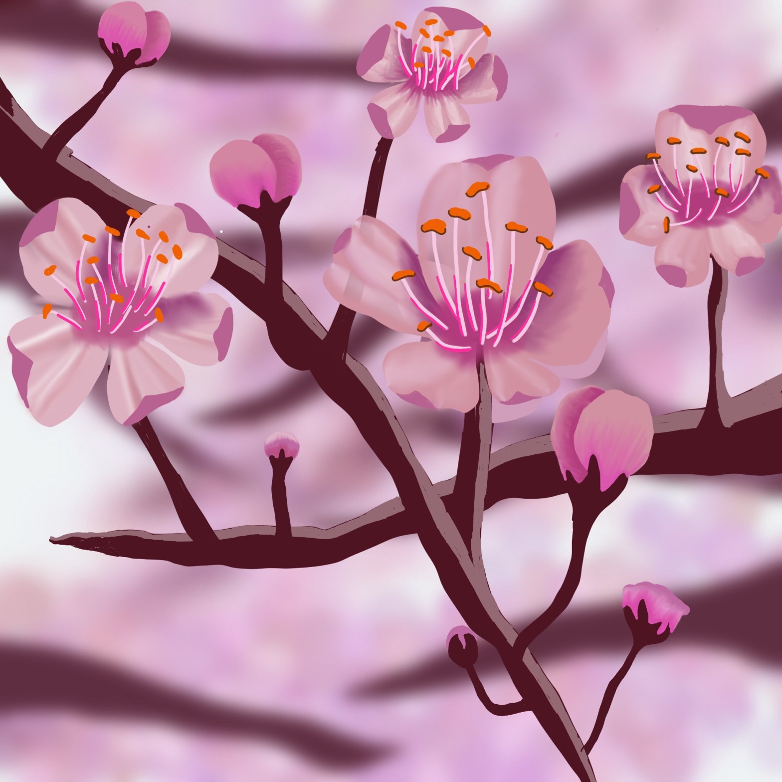 So I challenged myself to draw some cherry blossom using some pictures I found on the internet as a guide.