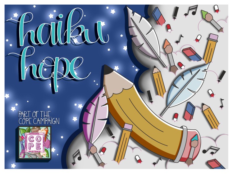 To give you some ideas, spark your own creativity and look at things besides drawing, I’ve now come up with ‘Crap Poems’, ‘Weird Words’ and this – ‘Haiku Hope’.